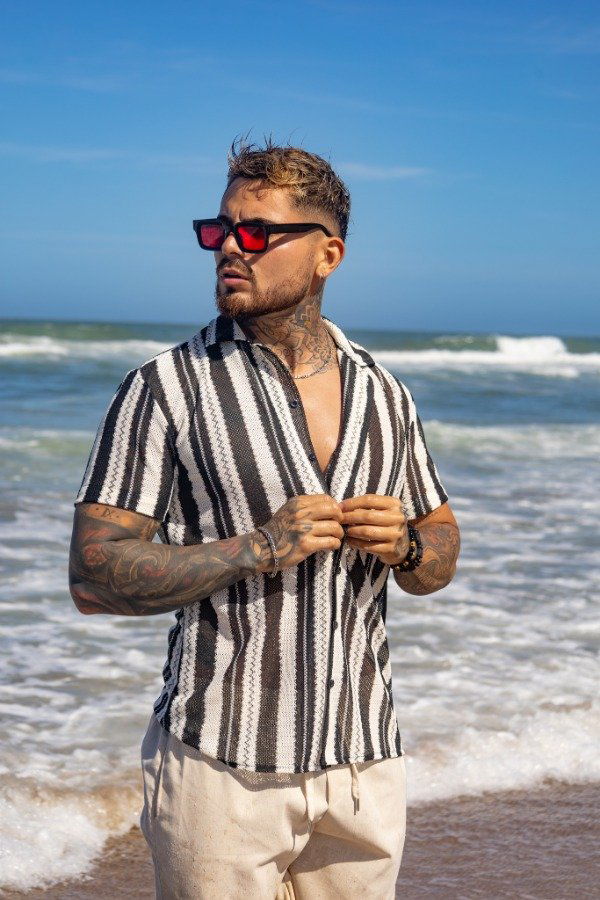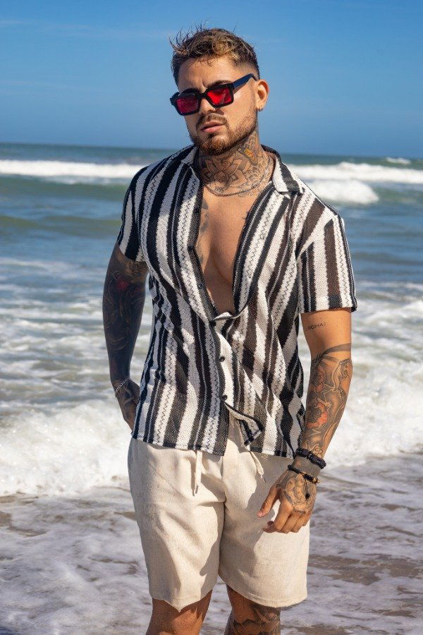 Camisa de Crochet Manga Corta para Hombre