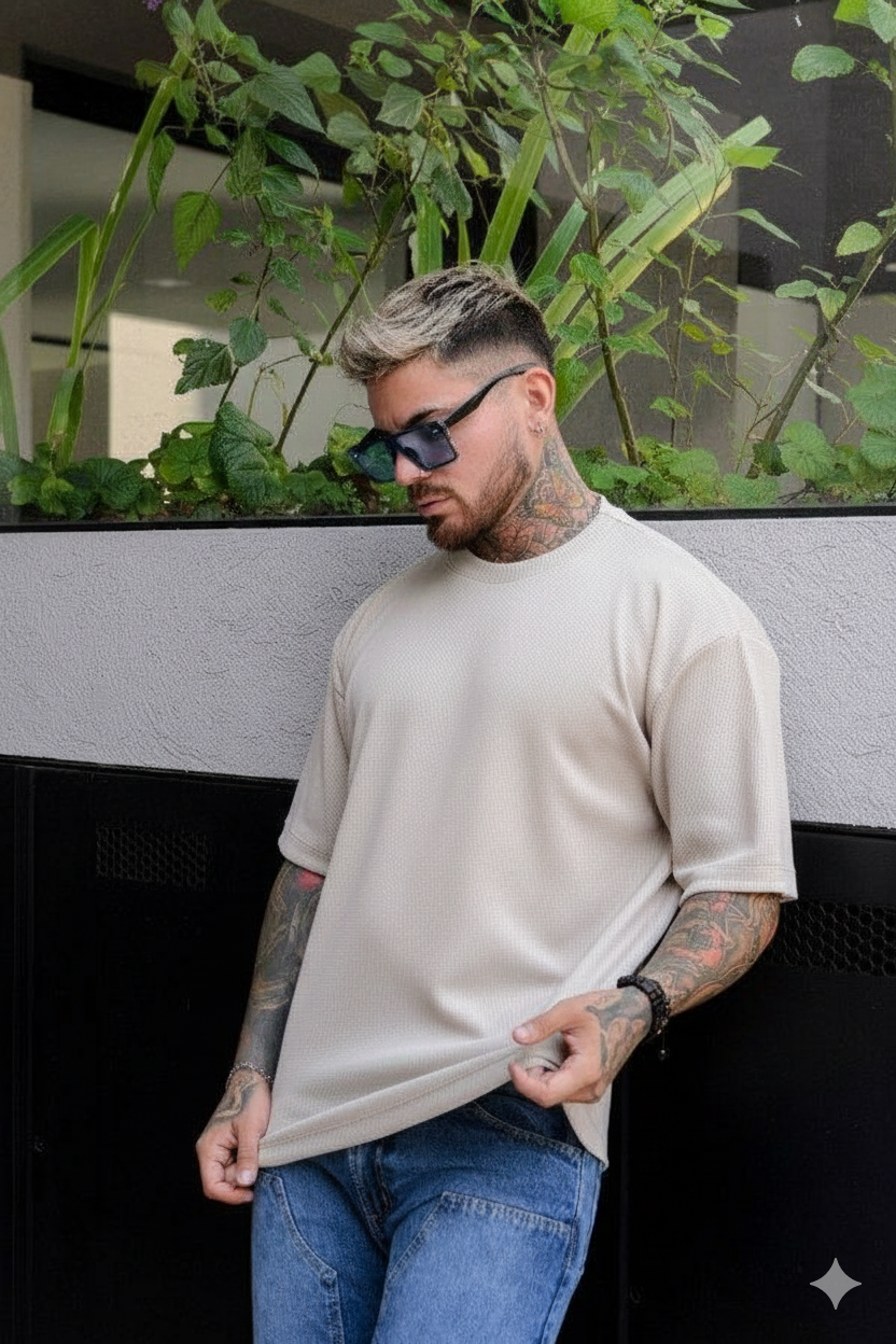 ¡Disfruta de la comodidad y el estilo con nuestra remera oversize de panal!