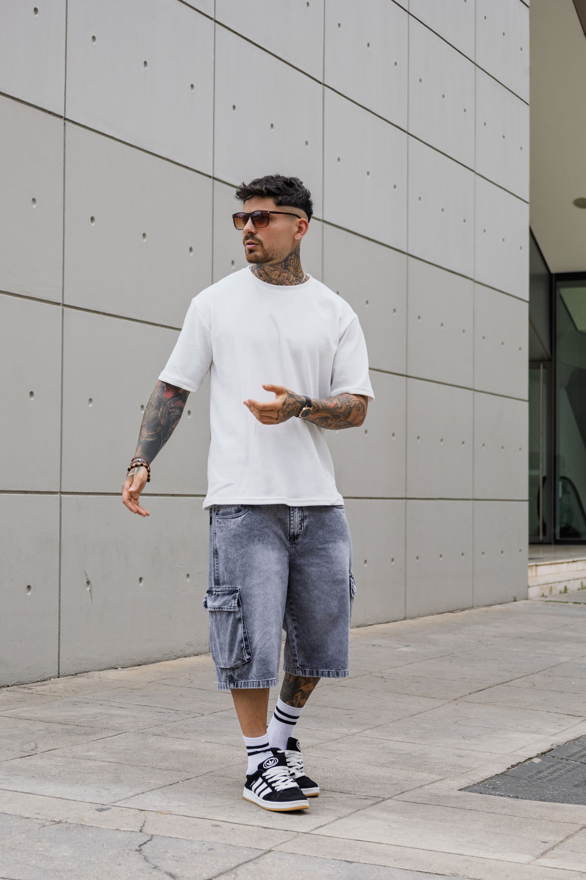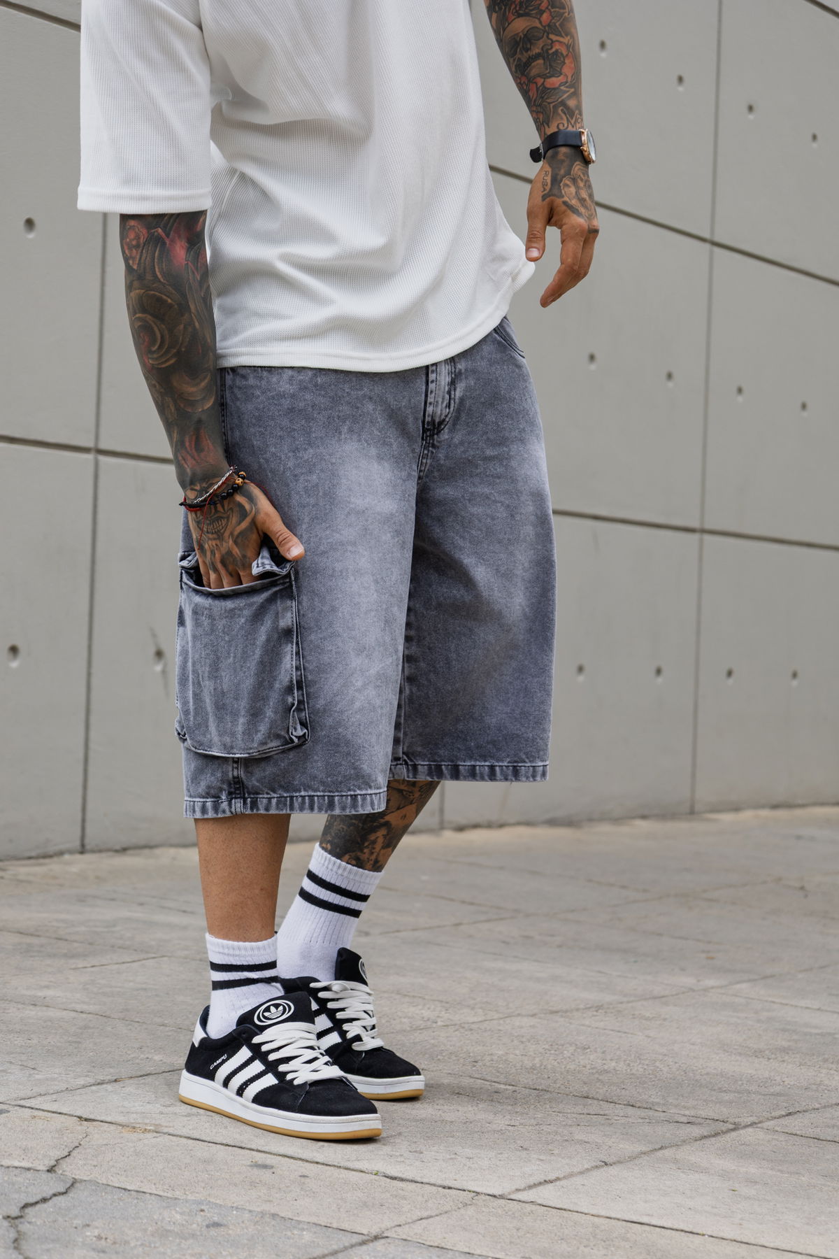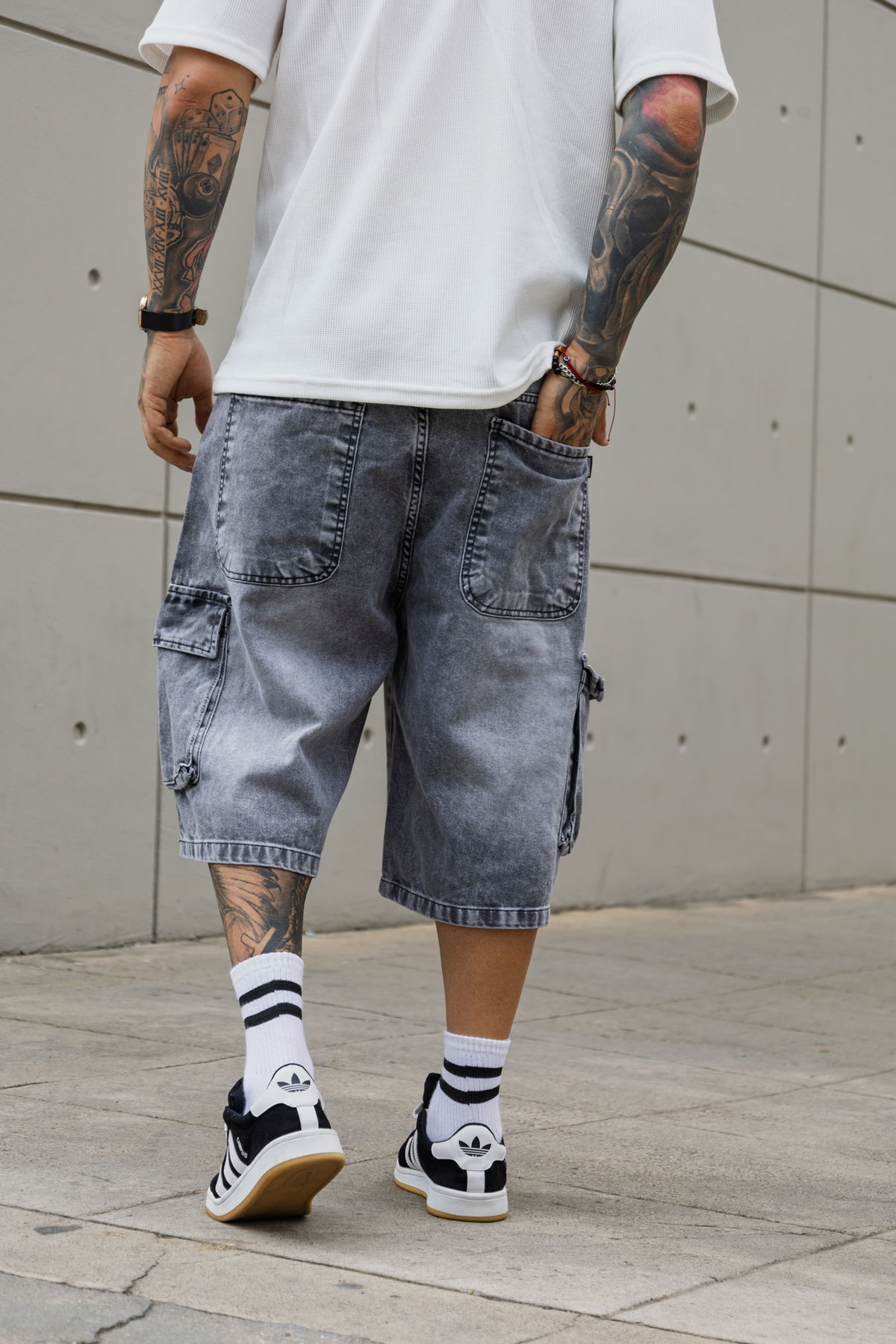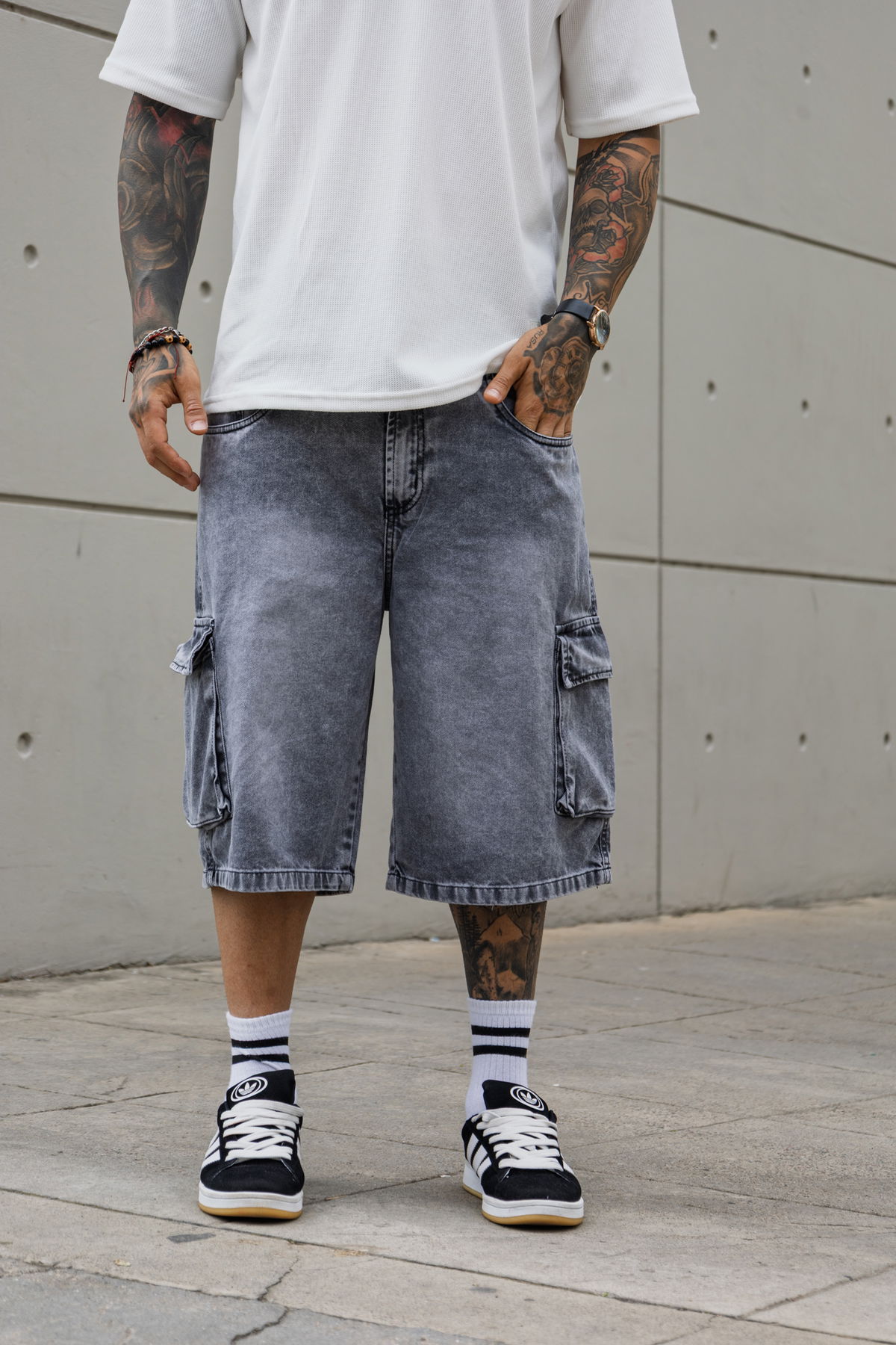 Bermuda baggy Cargo- Gris nevado