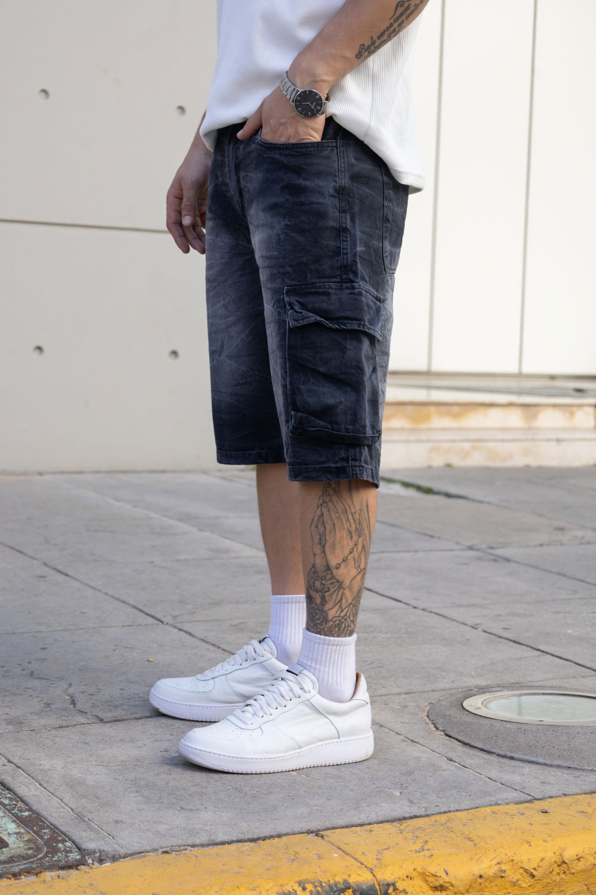 Bermuda Mom Cargo - Gris Localizado